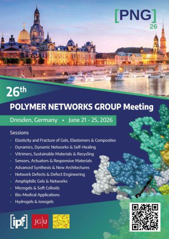 The Polymer Networks Group Meetings provide an outstanding platform to connect with researchers from many different fields encompassing all scientific aspects of polymer networks and gels. These topics range from synthesis, characterization, properties, technical applications, and recycling, and span the field of physics, chemistry, biology, engineering, and medicine. The key sessions of the meeting and the invited talks will address some of the most pressing problems and the most dynamically advancing directions of recent research. We hope that with your valuable contributions and insights at the PNG2026 in Dresden, you can help us push the field to the next level. (june 21-25, 2026)